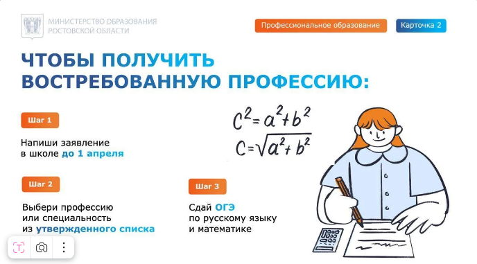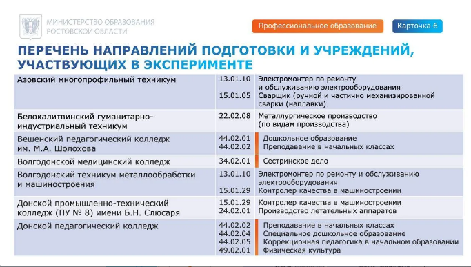 Выпускники 9-х классов могут сдать всего два обязательных экзамена – русский язык и математику – и поступить в колледж по приоритетным для региона направлениям. В проекте задействован 21 колледж по 19 специальностям и профессиям. Успейте до 1 апреля принять решение об участии и написать заявление в школе!
